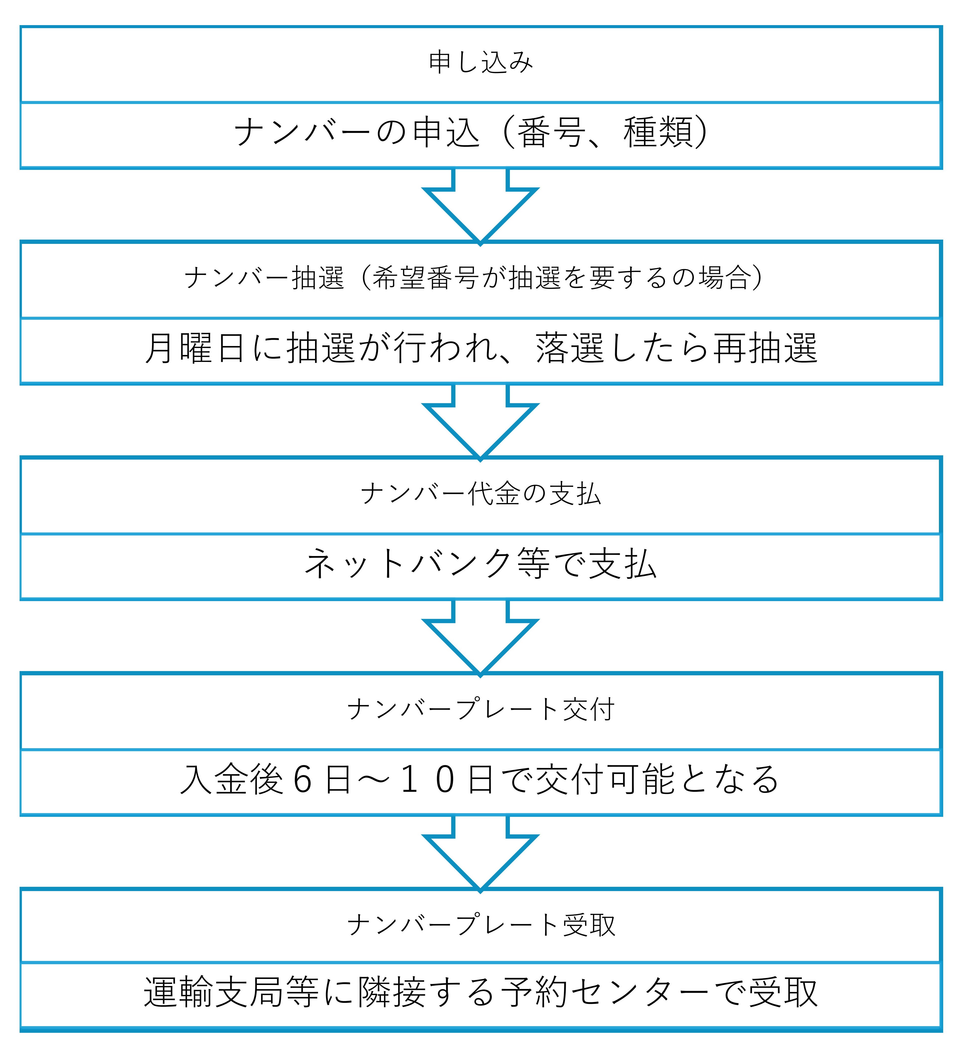希望番号ナンバープレートを取得する際の流れは以下の通りです。
