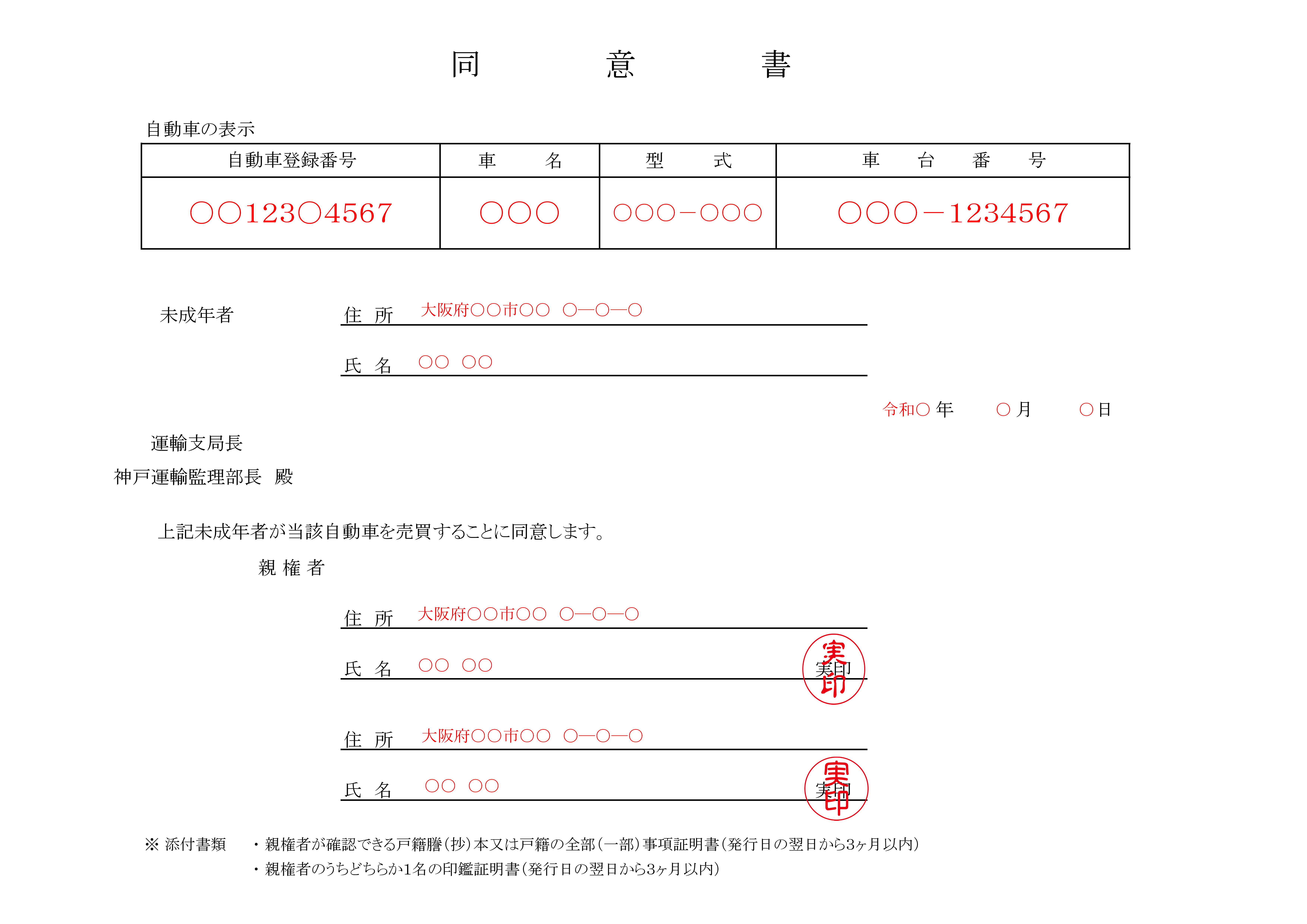 未成年が自動車を売買した場合、「同意」が無い限り登録することはできません。